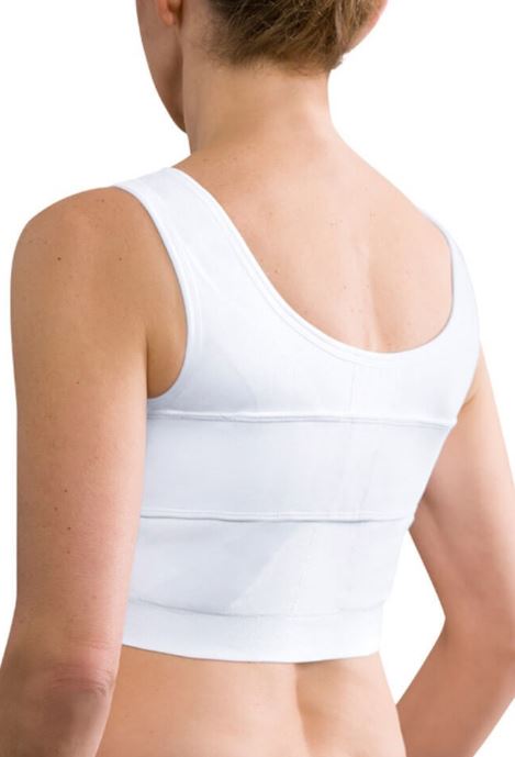 - Anatomically shaped with strong, stretchable material for optimal fit and compression of upper breast area