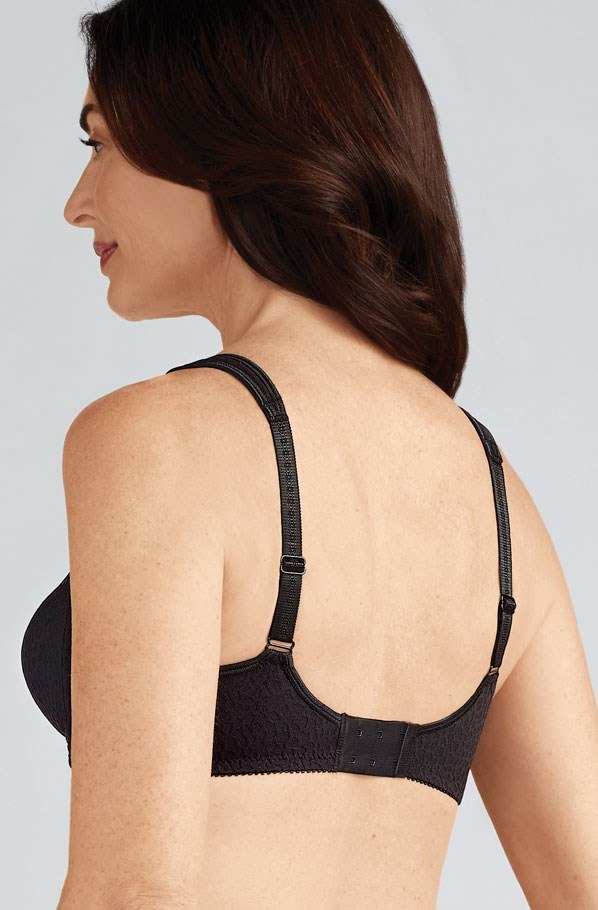 Mona's seam free cups are seamless and smooth under clothing with adjustable elastic straps (straps increase in width to maintain support in larger sizes) and are softly padded and wider across the shoulders to ease tension in the neck and shoulder area.