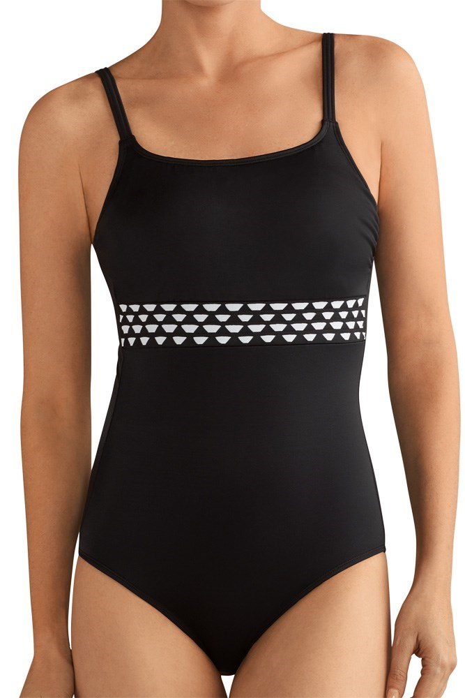 Our Cocos One-Piece Swimsuit will have you ready to set sail. Its solid black is instantly slimming whilst the laser cut woven detailing under your bustline adds something unique, a focal point for your eye. The Cocos swimsuit's neckline sits in a medium position, not too high and not too low, but perfectly placed for swim form security and just the right amount of sexy. In the back, an additional horizontal strap can be worn to keep the swimsuit in place, or removed when you want to show a low back. The Cocos one-piece swimsuit is your perfect choice for summer with super-soft pocketed cups