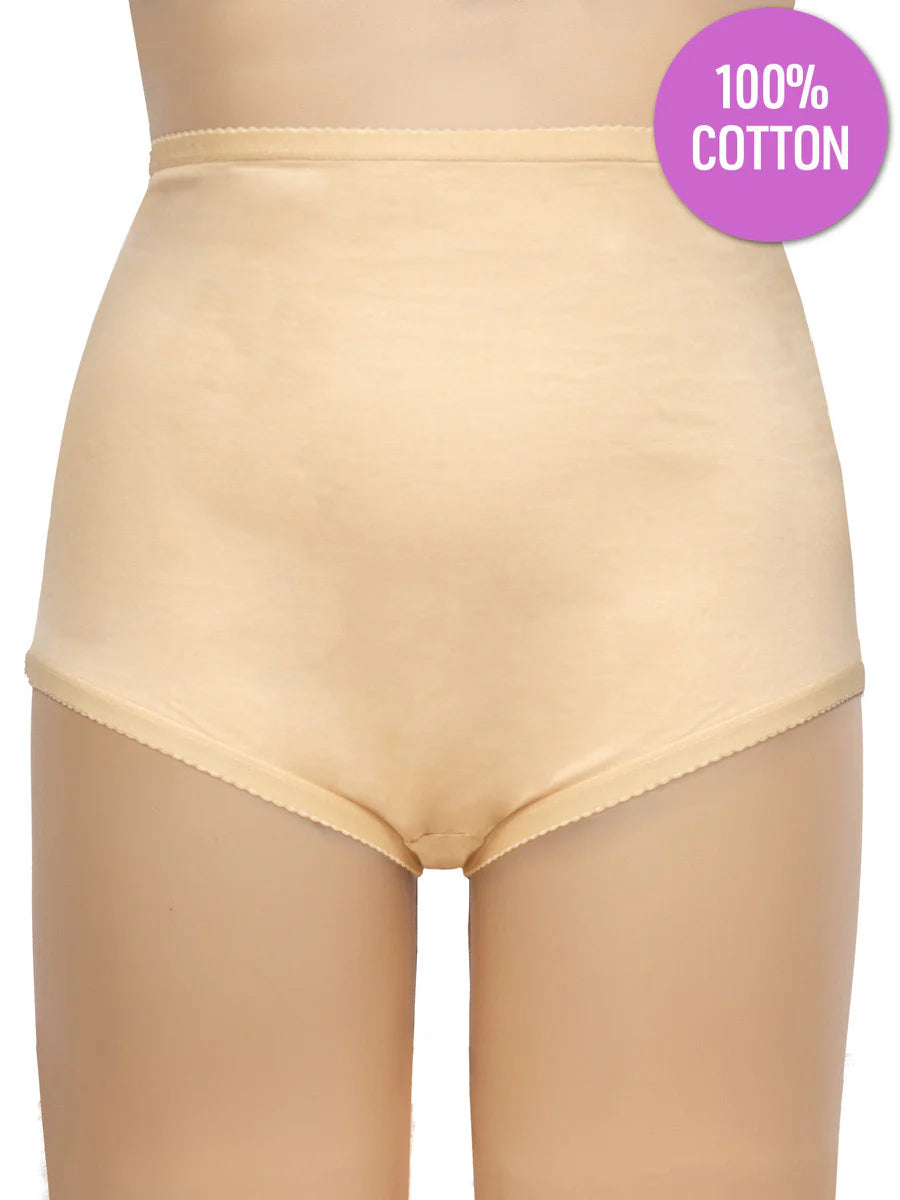 Beautifully soft and comfortable 100% cotton Full Briefs in Beige with elastic waist and legs.