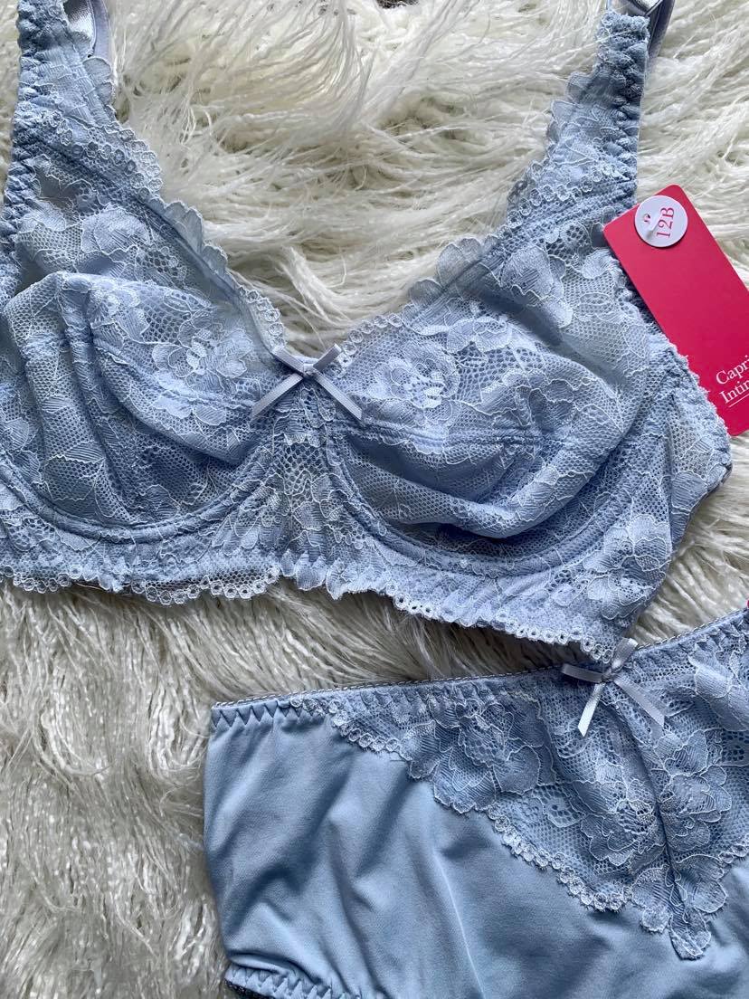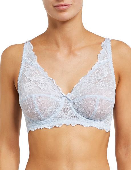 This stunning bra offers a three section shape definition cup with a wider under bust band that means the bra stays in place finished with a wider pretty lace extension strap in the front.
