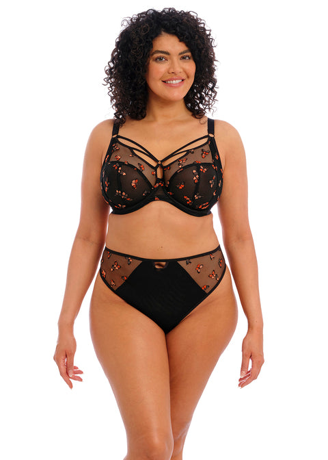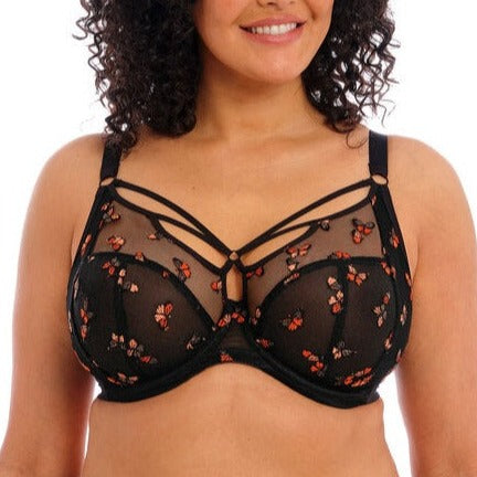 Kick starting 2023 is our signature Sachi range, now in an exciting new decorated option. Embroidered Monarch butterflies alight in a mix of copper and metallic bronze shades. Black Butterfly draws inspiration from the butterfly shape created by the strappy detailing of the original Sachi bra. A new full brief includes panels of embroidered butterflies, while a new strappy Thong completes the range.