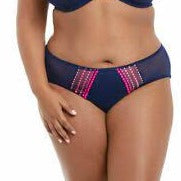The Elomi Matilda Brief combines sheer inserts with a lined front panel and embroidered details, offering modesty and classic coverage.