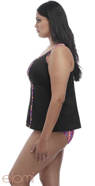 Power up with Nomad's multi-colour print story. With a selection of striped and solid pieces, this collection is perfect for mixing and matching. This unstructured tankini designed to be worn over one of our swim bras offers lightweight plain fabric on front and back made from Xtra Life LYCRA, vertical seams and underarm featured printed binding detail for a flattering style line. Matching Nomad swim brief ES7184 and ES7185