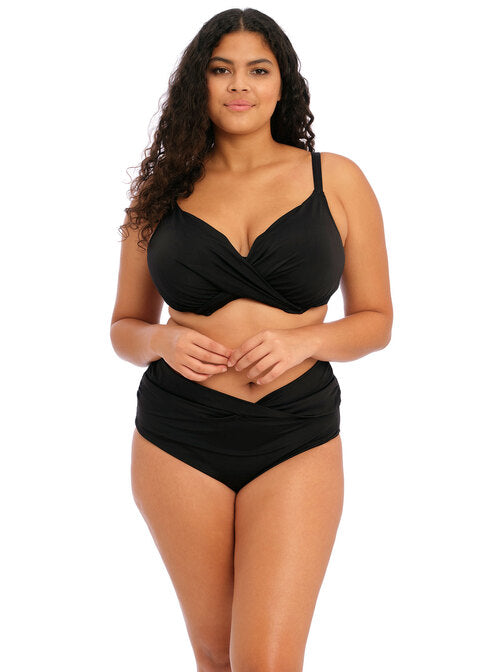Magnetic updates classic Elomi Swim styles with high fashion touches. Details include flattering twist front designs, strapping details and ‘barely there’ flesh tone panelling. Available in timeless Black. Matching swim brief for Magnetic Bikini Top ES7193BLK