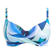 Dive in to summer with all-new Aguada Beach for Summer. The exclusively designed watercolour print takes inspiration from the ocean, with its blend of turquoise and azure blue hues. With wrap front styling, is flattering for all bust sizes up to a H cup. Matching bikini briefs are available in full brief FS502971SPH and mid rise brief FS295070SPH