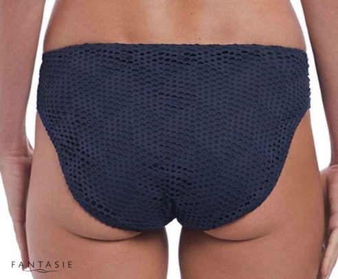 Escape with Marseille. Offering a gorgeous crochet overlay from front to back of brief, medium coverage, a gentle gathered styling at side front seam, and a rose gold Fantasie branded tab. Also available in the Marseille collection Bikini Tops FS6670 and FS6682, Swim Briefs FS6686 and FS6695.