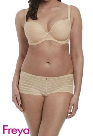 This gorgeous brief offers a on trend low rise styling, selvedge leg for smooth no VPL line under clothing and a silver bar trim at centre front. Cameo also comes in a G String AA3167 with both briefs matching Cameo bras AA3160, AA3161, AA3163.