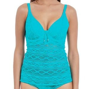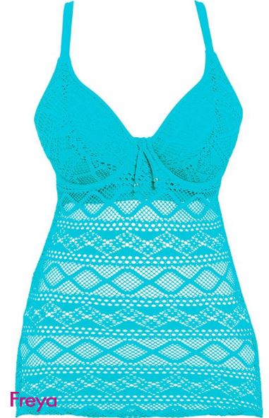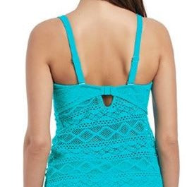 Sporty is the new sexy! Sundance combines cool crochet with funky geometric shapes in flattering shades of black and white. The tankini features lightly padded foam cups for rounded shape and support, alongside a low plunging neckline for a flattering look. Convertible, adjustable straps can be worn as halter, over the shoulder or cross back, for a totally multi-functional and super chic style.