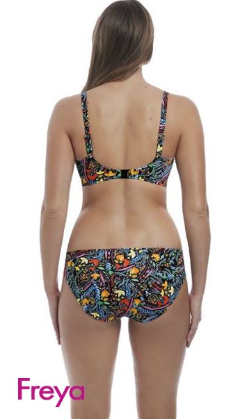 An enchanting swim collection, Modern Mystic's trailing botanical print pops against a black background in bold tones of azure blue, sunshine yellow and zesty green. This gorgeous bikini brief sits on the hips, has good bottom coverage and offers a flattering cut on the leg. Matching bikini top AS6832 and swim brief AS6834.