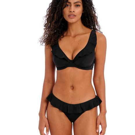 Jewel Cove plunge bikini top in Plain Black. Featuring Xtra Life Lycra, you can enjoy long-lasting comfort, fit and shape with no bagging or sagging.