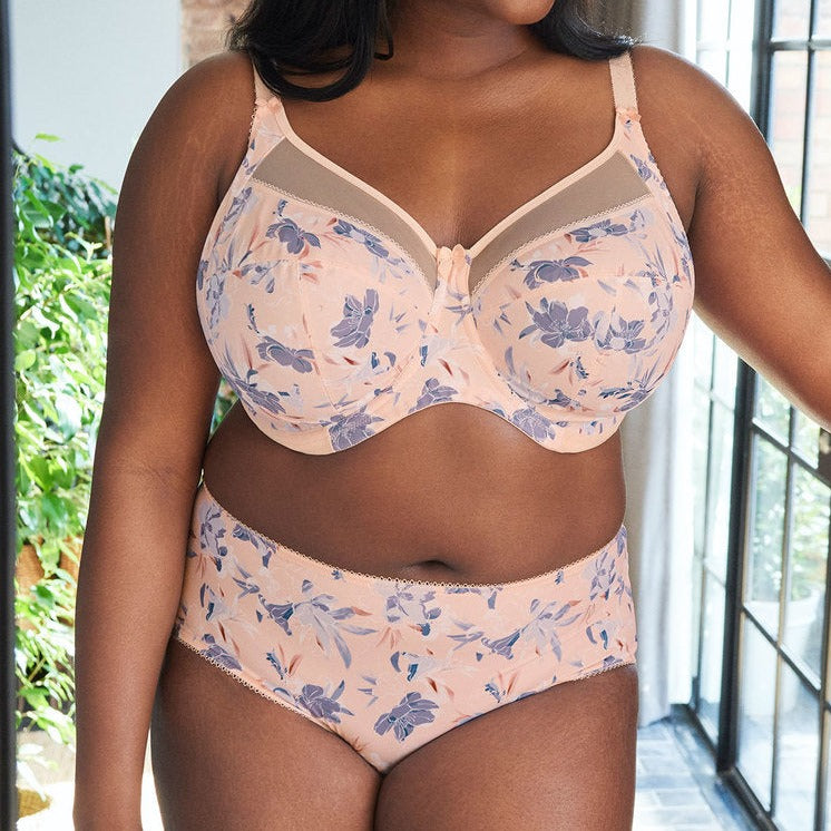 Kayla’s seasonal florals are always a highlight of the Goddess fashion collections, and season is no different. Serenity, features blue-grey flowers on a peach ground, silhouetted with white, hand-drawn outlines for a bright tri-layer look. Add brief GD6168SNY for a beautiful set.