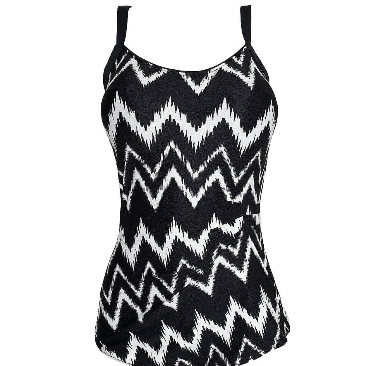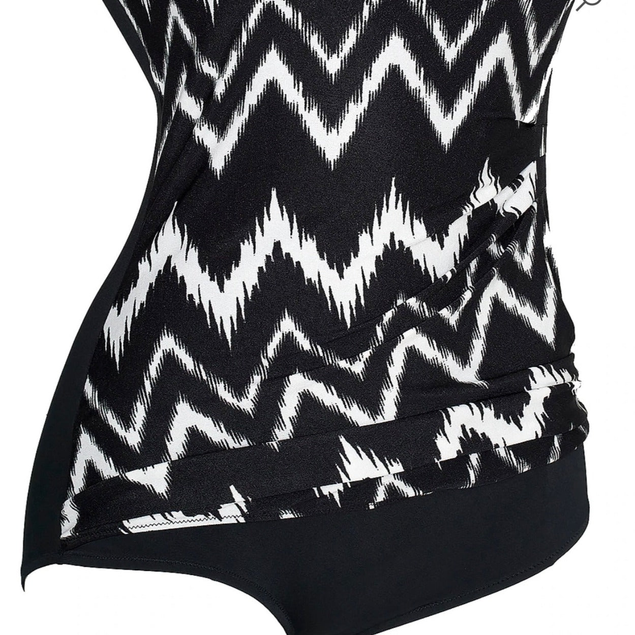 ZIG ZAG has full coverage front with ruching at the side for a flattering supported figure. With thick straps interchangeable and adjustable straps you have the freedom of wearing this swim dress as you desire.
