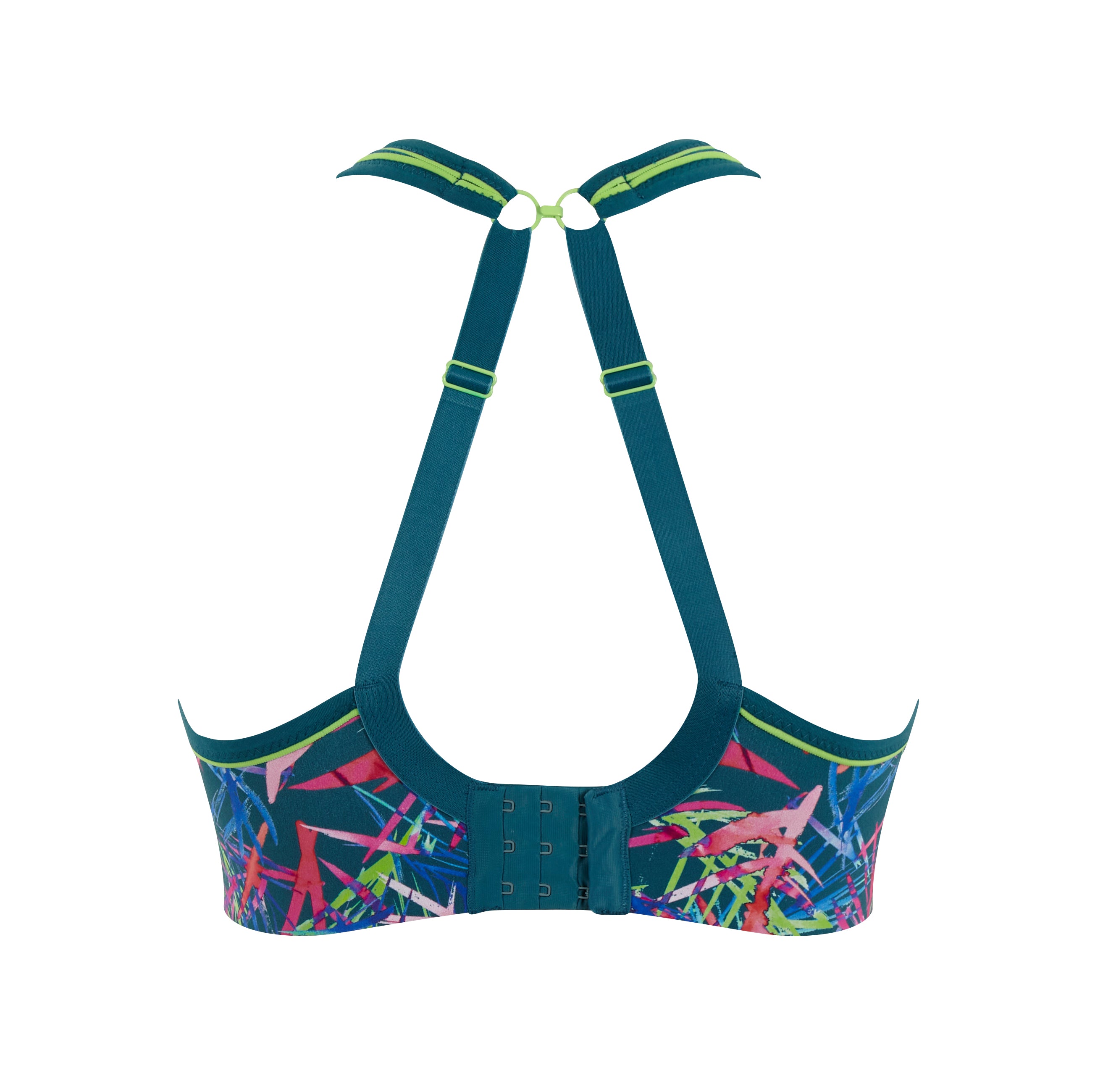 The Panache Sport Bra provides you with ultimate support, whilst the print inject pops of colour. The moulded seam free inner cups encapsulate each breast, offering control and give a defined shape whilst the wide cushioned shoulder straps, with racer back ring detail offers additional stability and support, dispersing pressure whilst exercising. The breathable outer performance fabric also offers ventilation, allowing you to keep dry and comfortable whilst working out. Perfect for any intensity workout, it’s a definite must have for all you stylish fitness fanatics out there.