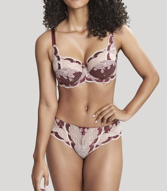 A true Panache icon, the Clara full cup bra is a firm favourite and a best seller from our collection. This classic design with luxurious contrasting lace gives an essence of vintage glamour. Offering an amazing fit and forward projection, Clara offers every day comfort and shape combined with a luxury design and glamorous detailing. Matching brief 7253PLM and G-string 7259PLM.