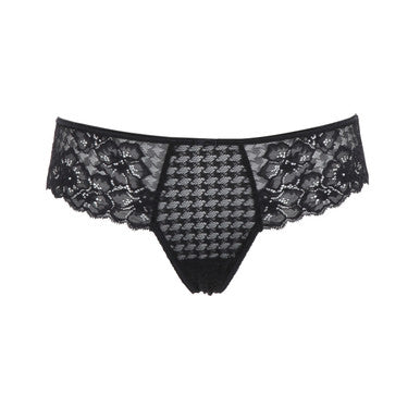 Complete your timeless lingerie set with the Envy Thong in Black. Featuring the same deluxe houndstooth lace as our bestselling Envy bra, this Thong will flatter your curves to ensure a lingerie look you'll love. Matching Envy bra 7285BLK.