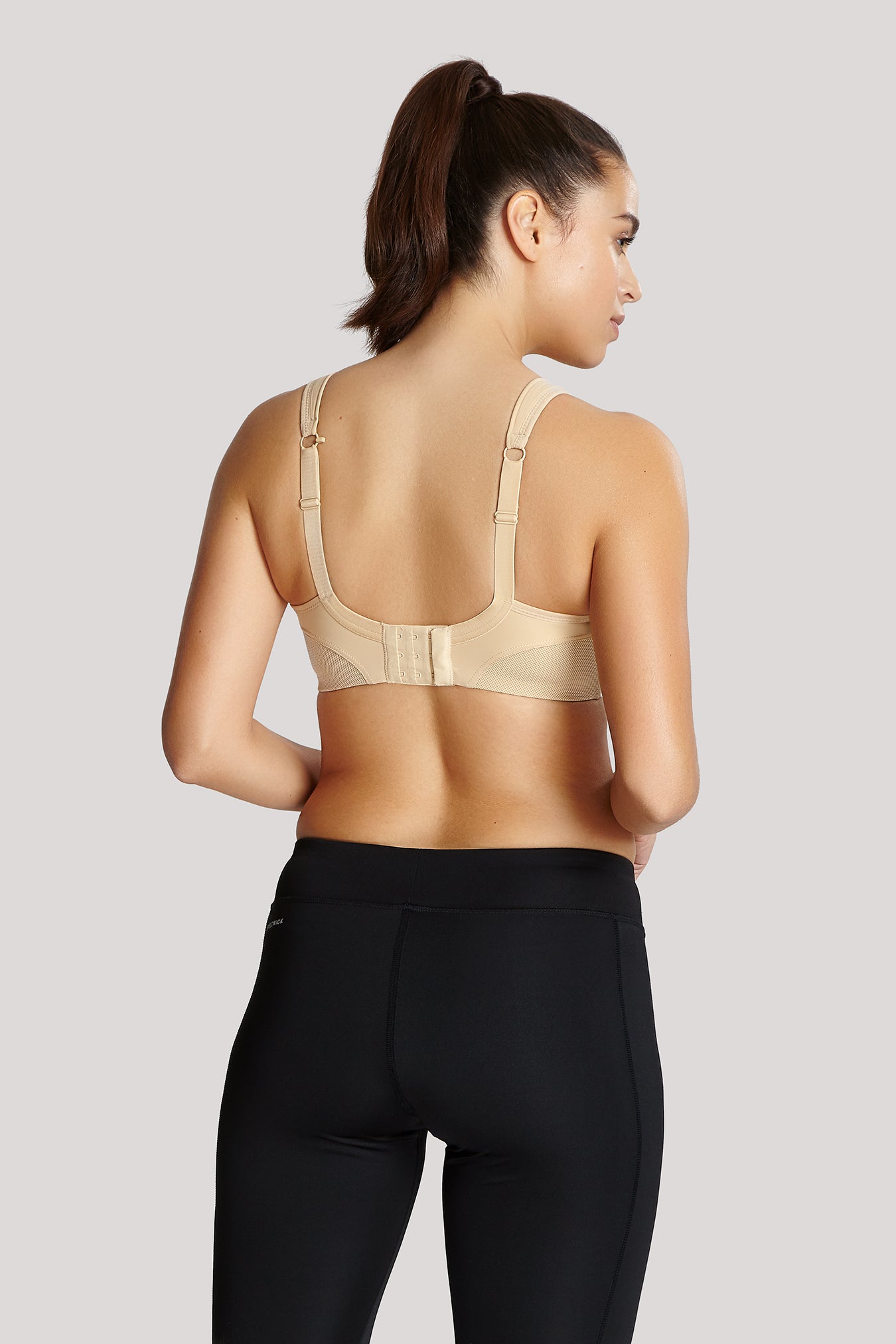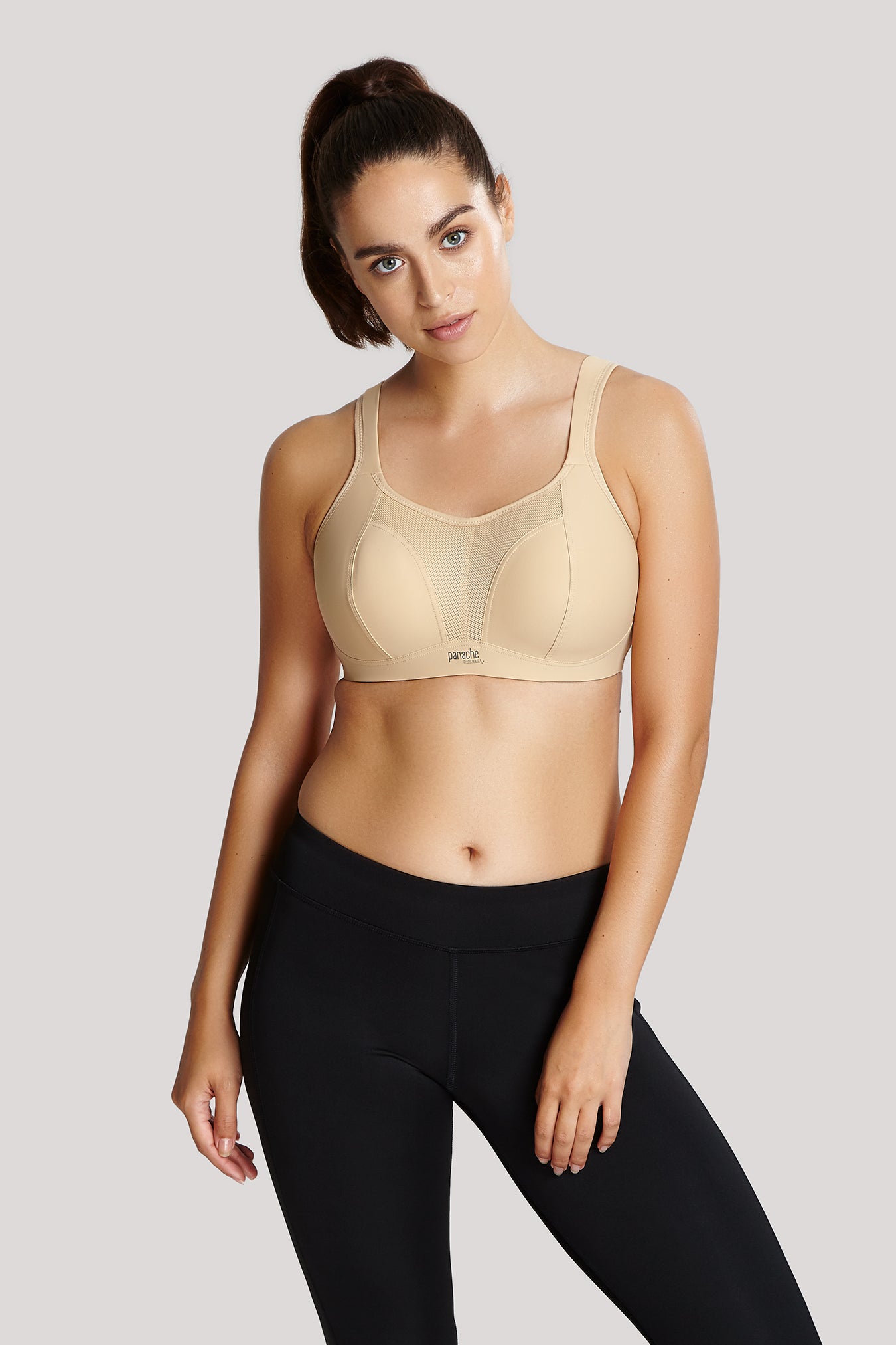 Panache offers a non wire sports bra that features moulded seam free inner cups that encapsulate each breast, offering control and a defined shape. With wide cushioned shoulder straps that disperse pressure when exercising and a racerback option through back ring this non wired sports bra is the perfect alternative.