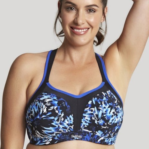 Fashion forward, comfortable and supportive, the Panache Sport Bra, providing you with maximum support and a stylish design. The moulded seam free inner cups encapsulate each breast, offering control and give a defined shape whilst the wide cushioned shoulder straps, with racer back ring detail offers additional stability and support, dispersing pressure whilst exercising. The breathable outer performance fabric also offers ventilation, allowing you to keep dry and comfortable whilst working out. Perfect for both high and low impact exercise, it’s a definite must have for all you stylish fitness fanatics out there.