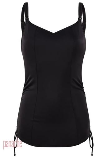 This stunning tankini offers darted, underwired inner cups that provide comfortable and discreet support, draw side sides that enable the length and level of ruching to be adjusted for a flattering fit on any body shape, Xtra Life LYCRA fabric that resists fabric degradation caused by perspiration, chlorine and oils and fully adjustable straps with denier and rubber inside give a firm and comfortable fit. Matching swim briefs SW0886BLK and skirted swim brief SW0888BLK.