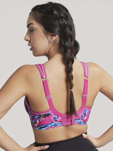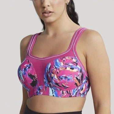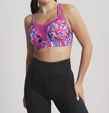 The Panache Sport Bra provides you with ultimate support, whilst the print inject pops of colour. The moulded seam free inner cups encapsulate each breast, offering control and give a defined shape whilst the wide cushioned shoulder straps, with racer back ring detail offers additional stability and support, dispersing pressure whilst exercising. The breathable outer performance fabric also offers ventilation, allowing you to keep dry and comfortable whilst working out. Perfect for any intensity workout, it’s a definite must have for all you stylish fitness fanatics out there.