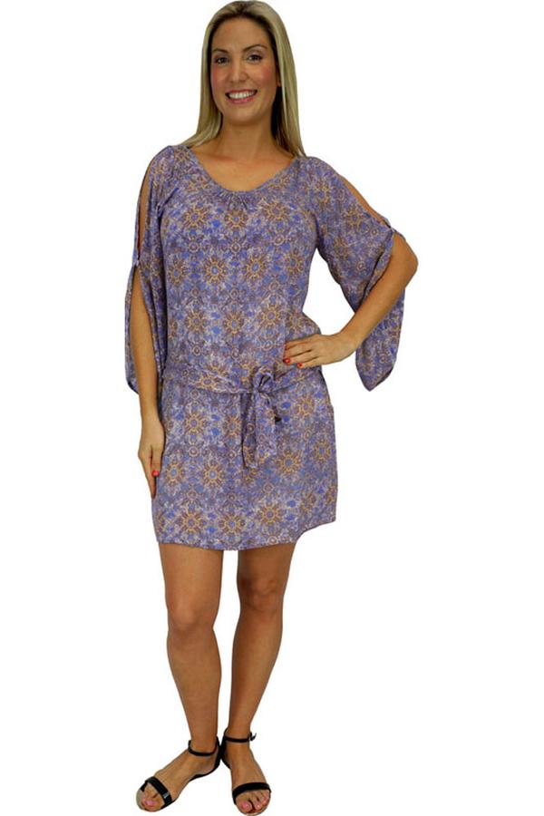 Made from a beautiful light weight rayon chiffon, with open sleeves and a matching fabric tie for around the waist this dress is perfect for summer.