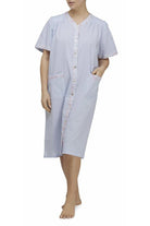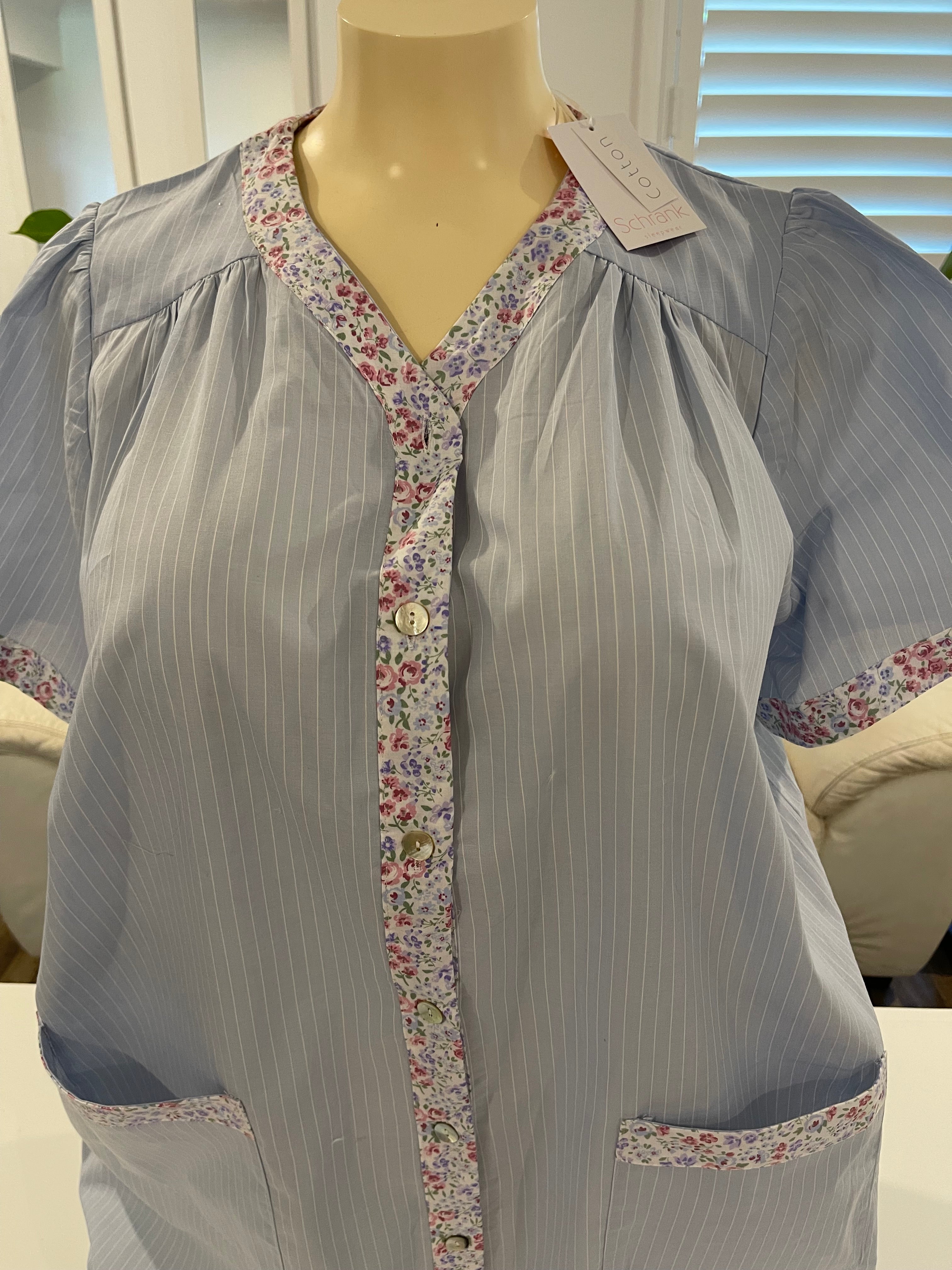 Beautiful Cotton Brunchcoat with buttons down the gorgous floral trim in the centre. Pockets and sleeves .