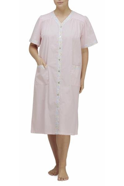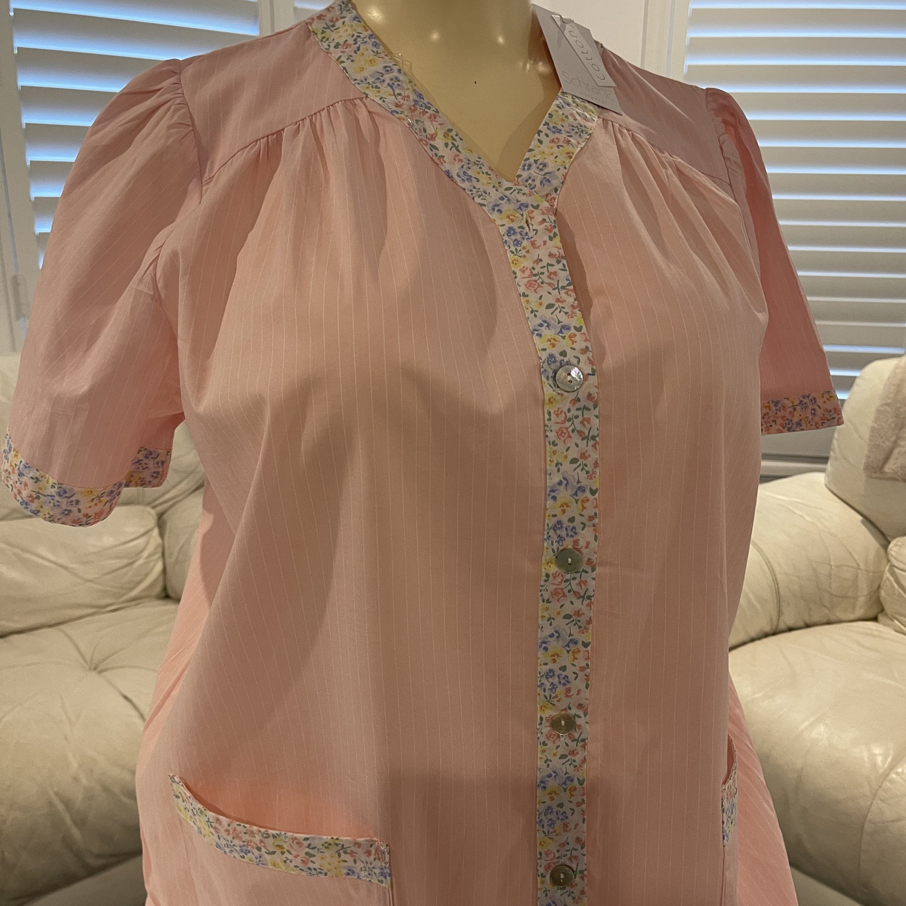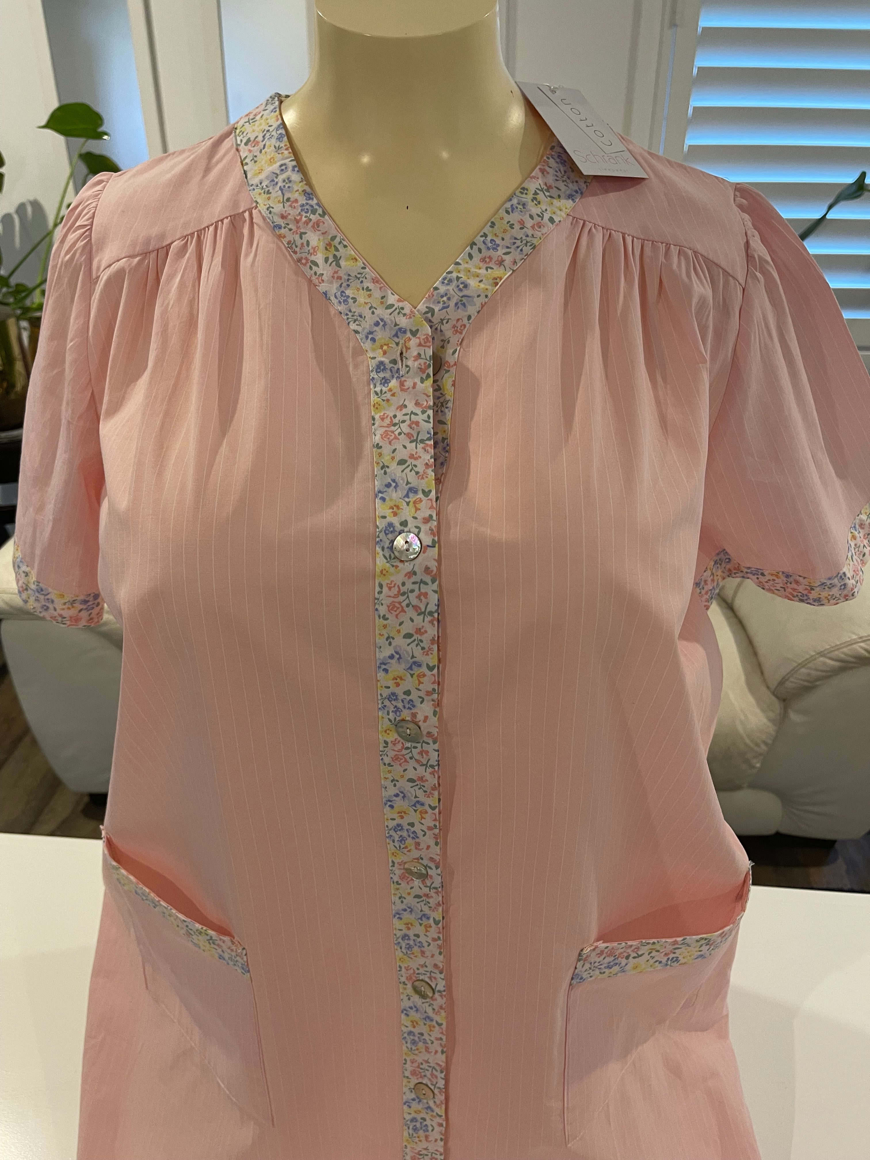 Beautiful Cotton Brunchcoat with buttons down the gorgous floral trim in the centre. Pockets and sleeves .