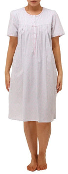 Beautiful short sleeved Pink nightie for the Summer in Woven Cotton.