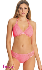 Freya AS3976 Sundance swim Brief co-ordinates with the Freya Sundance collection. This gorgeous Sundance swim brief sits on the hips with flattering cut on the leg. Front and back lined with good bottom coverage. Also available in the Flamingo colour Halter bikini top AS3971, Hi neck bikini top AS3973, Swim brief AS3975.