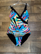 Very flattering swimsuit with the cross over front and lovely vibrant colours.