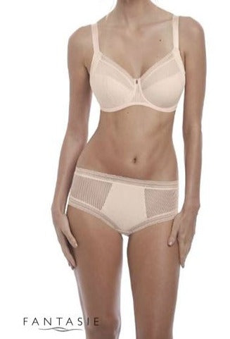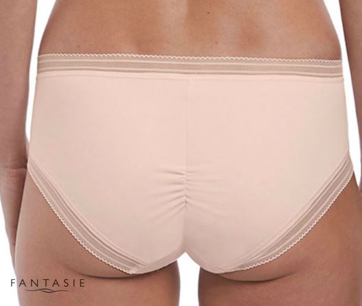 This gorgeous brief features a deep flat elastic at the waist and front of leg for a smooth finish and a gather at centre back seam for shaping. Matching bra FL3091BLH.