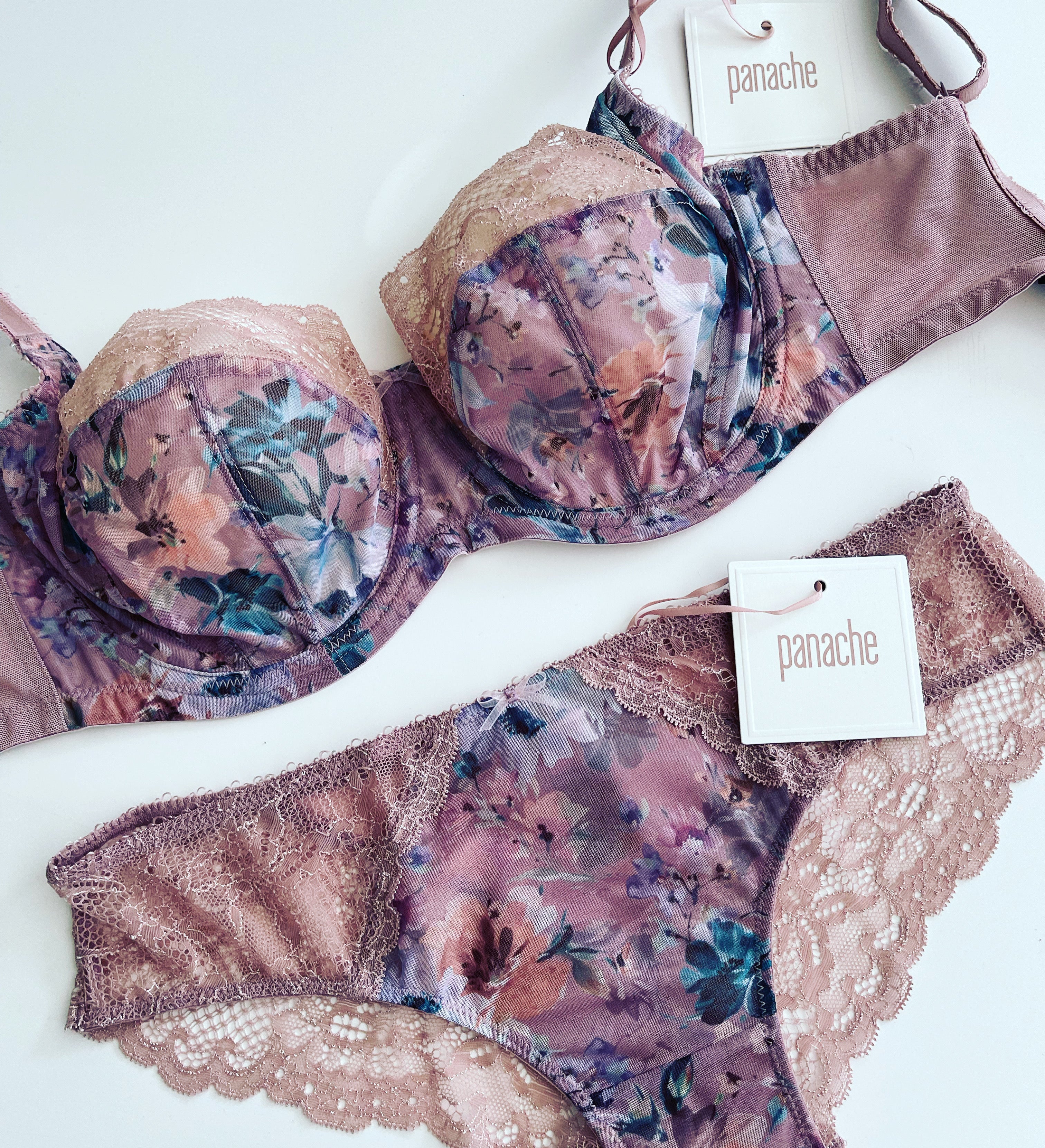 Jasmine is a classic Panache balconette style, fit for any occasion. Offering incredible uplift, Jasmine gives amazing forward projection and a very supportive fit. Its stretch lace top cup allows for an accommodating fit for fuller busts, whilst the laminated bottom cup maintains a secure and supportive fit.