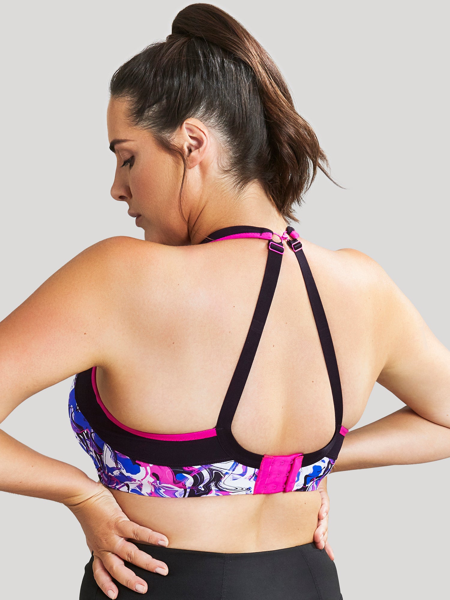 Converts from straight straps to racer back for increased support and more freedom of movement.